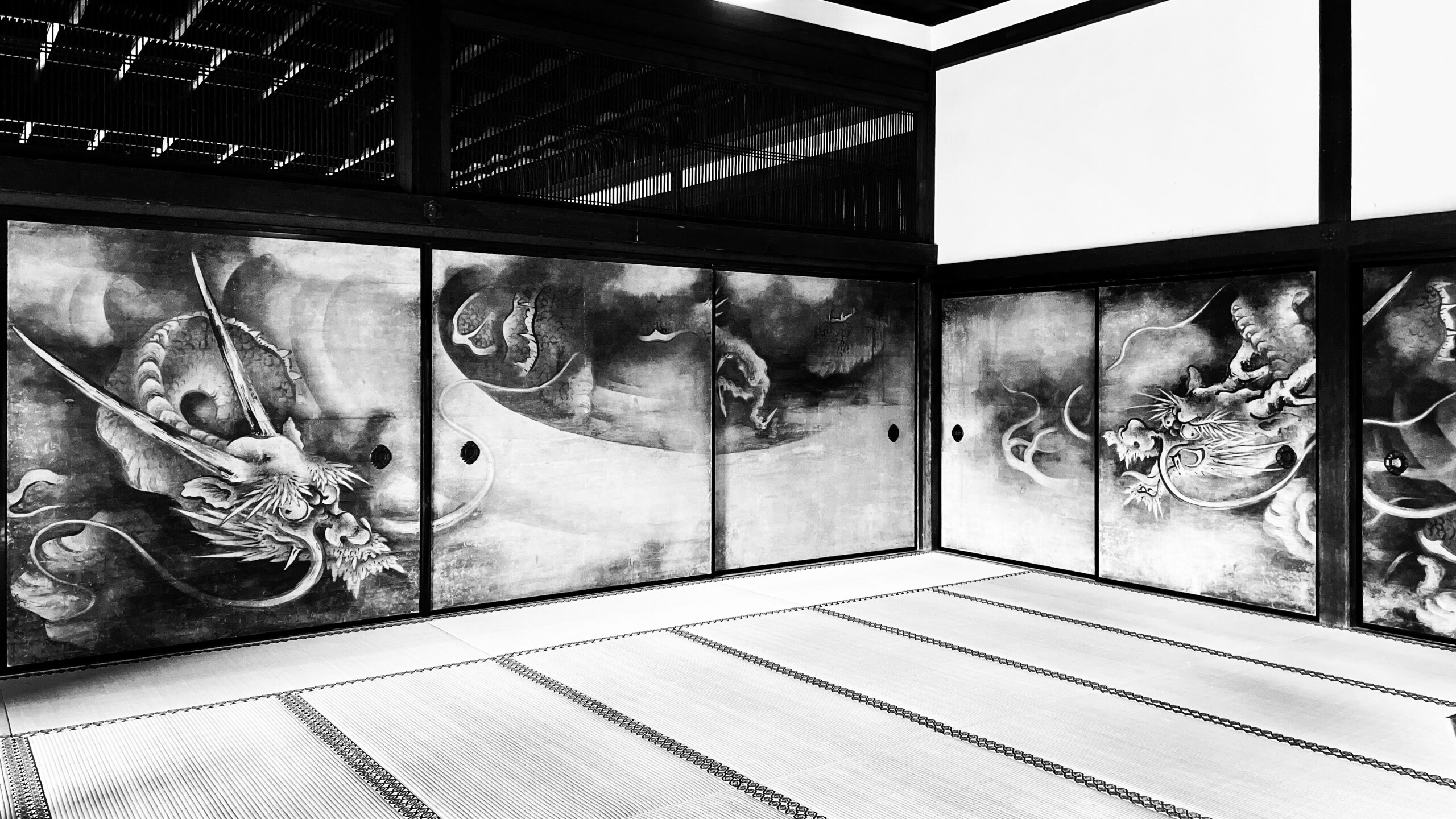 小泉淳作が描いた双龍図と海北友松が描いた雲竜図の間には、約400年の年月差があります。